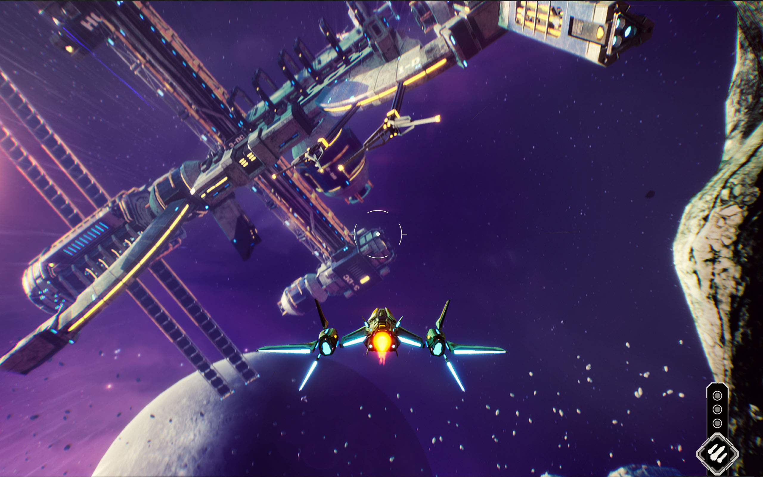 Step into the cockpit of your fighter, strategically pick your loadout, and fire up your weapons. Challenge your skills and reflexes while assaulting mighty Corvettes, escorting Cargo ships, shaking combat drones off your tail, engaging in furious 1v1 space duels, infiltrating colossal Motherships, and destroying them from within.